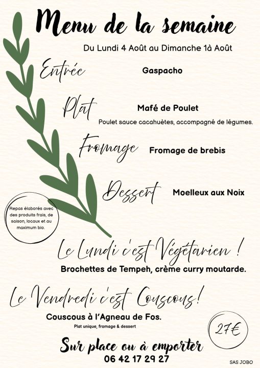Menu de la semaine à L’Eco gîte La Grange 4 août 2025 Éco Gîte La Grange Les inclassables 0 Partager la publication "Menu de la semaine à L’Eco gîte La Grange" FacebookTwitterWhatsAppPartager...E-mailImprimer