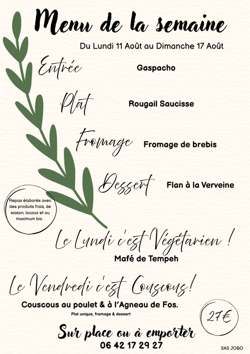 Nouveau Menu de la semaine à L’Eco Gîte la Grange !