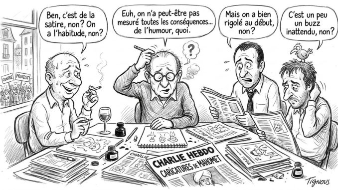 En relisant mon article, je me rends compte qu’il manque effectivement le paragraphe qui permet de comprendre correctement ce dessin. Seules les personnes présentes à la réunion pouvaient saisir immédiatement le contexte, ce qui peut expliquer certaines interprétations.